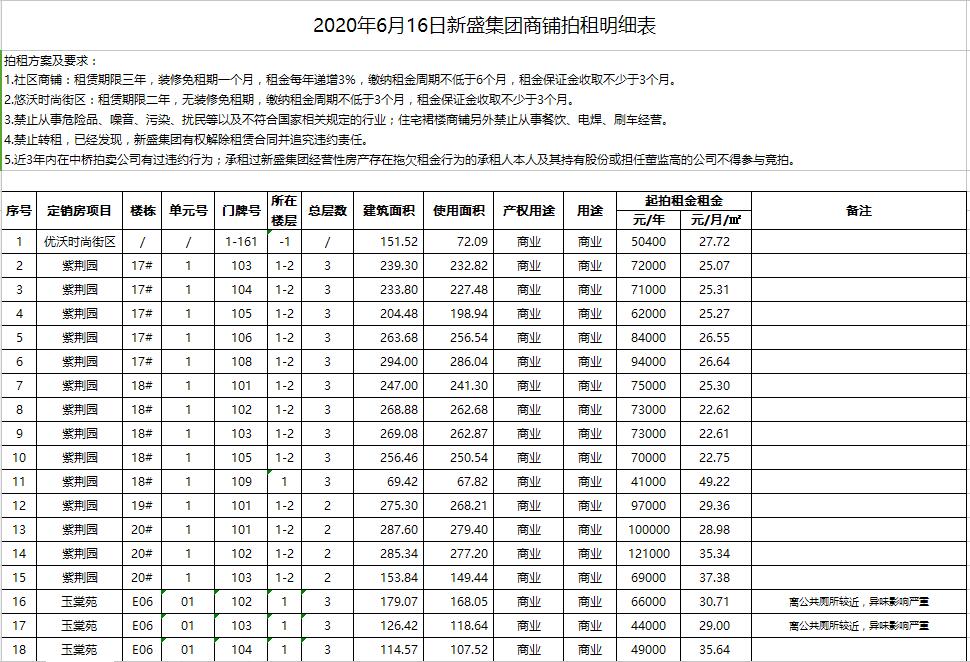 近3年內(nèi)曾經(jīng)違約的競買人;承租過新盛集團(tuán)經(jīng)營性房產(chǎn),存在拖欠租金行為的承租人及其持有股份或擔(dān)任董監(jiān)高的公司不得參與競拍。