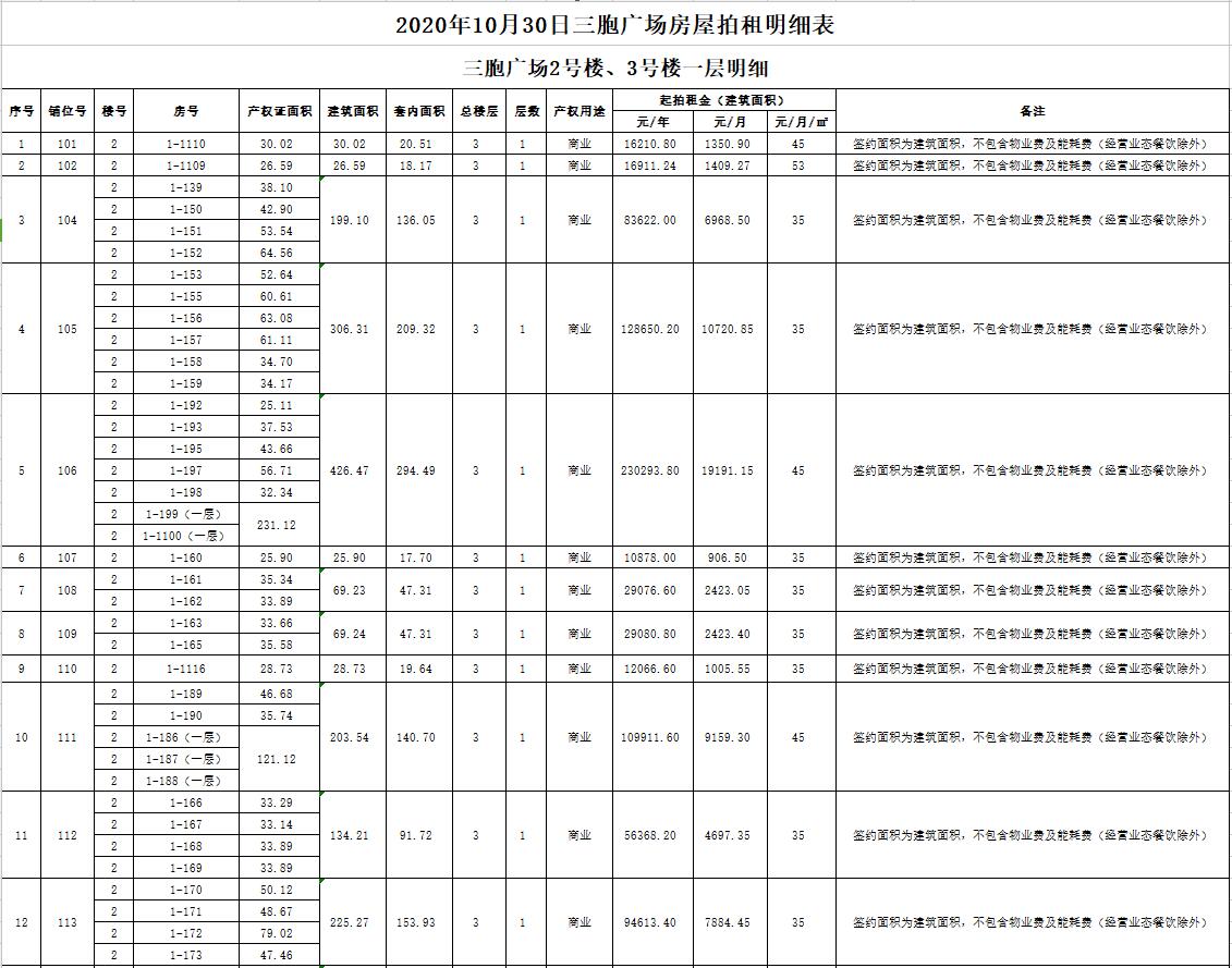 關(guān)注微信公眾號我公司受委托,定于2020年10月30日10時(shí)在徐州中山南路55號本公司三樓拍賣廳公開拍租:三胞廣場2號樓、3號樓1層、3層等部分商鋪及辦公房,面積分別約為數(shù)十至數(shù)百平米,租期3-5年。禁止從事危險(xiǎn)品、有污染及擾民的行業(yè)經(jīng)營。