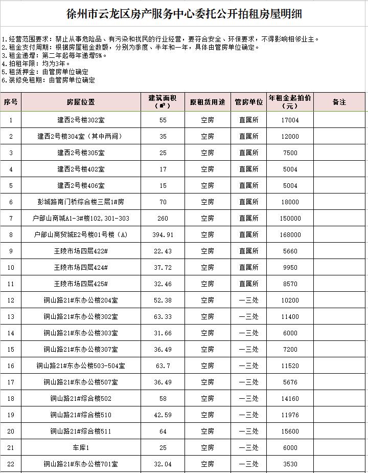 關(guān)注微信公眾號我公司受委托,定于2020年12月18日10時在中山南路55號本公司拍賣廳對云龍區(qū)公有房屋50余處進行公開拍租: